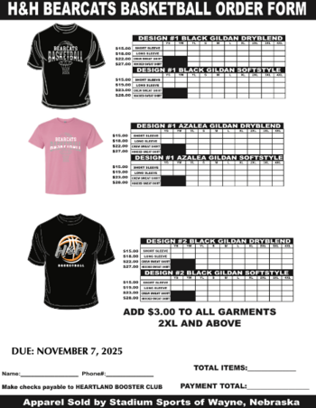 The HCS Booster Club is offering new Bearcat apparel options. Forms were sent home with students last Thursday. There is only a paper form for ordering (no online link). Shirt and sweatshirt samples will be in the office when they arrive. All orders are due on November 7. This would make a great Christmas gift for students, parents, grandparents, or community fans!
