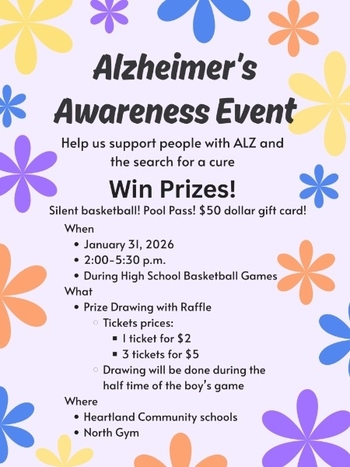 Heartland FBLA members Kate Haidle, Ashlyn Friesen, and Julia Tessman will host an Alzheimer's Awareness Event on Saturday, January 31. The event and raffle will take place at the H&H Basketball Games which begin at 2:30 p.m. at Heartland. It is designed to raise awareness about Alzheimer’s disease, brain health, and the importance of early detection. The FBLA members desire to share information and raise money to . . .