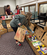 In addition to the Legacy Square delivery, the HCS students sorted and organized non-perishable food items, cleaning supplies, and personal items, and were able to deliver to 32 local families. Each delivery also included an anonymously donated ham and Henderson Chamber Bucks to be used around town.