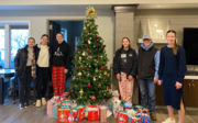 On the last day before break, the Sock Drive donations were sorted and organized into 34 gift bags that included socks, snacks, lotions, puzzle books, and other goodies, and were delivered to Legacy Square to distribute to the residents.