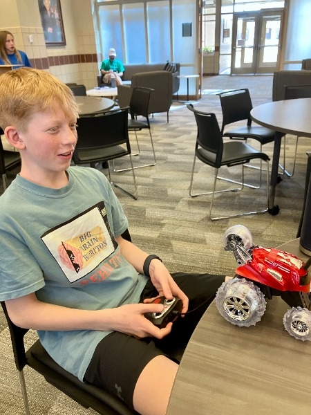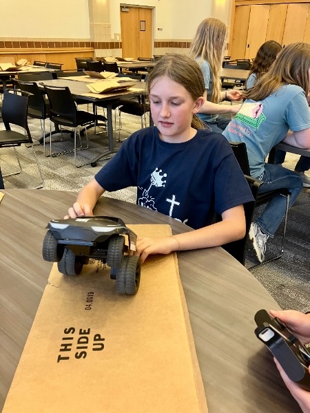 At the event, the teams gave their project and robot presentations. They also competed against each other in a robot game. Other highlights included touring Raikes School of Computer Science and Management and completing an activity with remote control cars protecting a treasure with cardboard, tape, and scissors only. The students also enjoyed UNL Dairy Store ice cream!